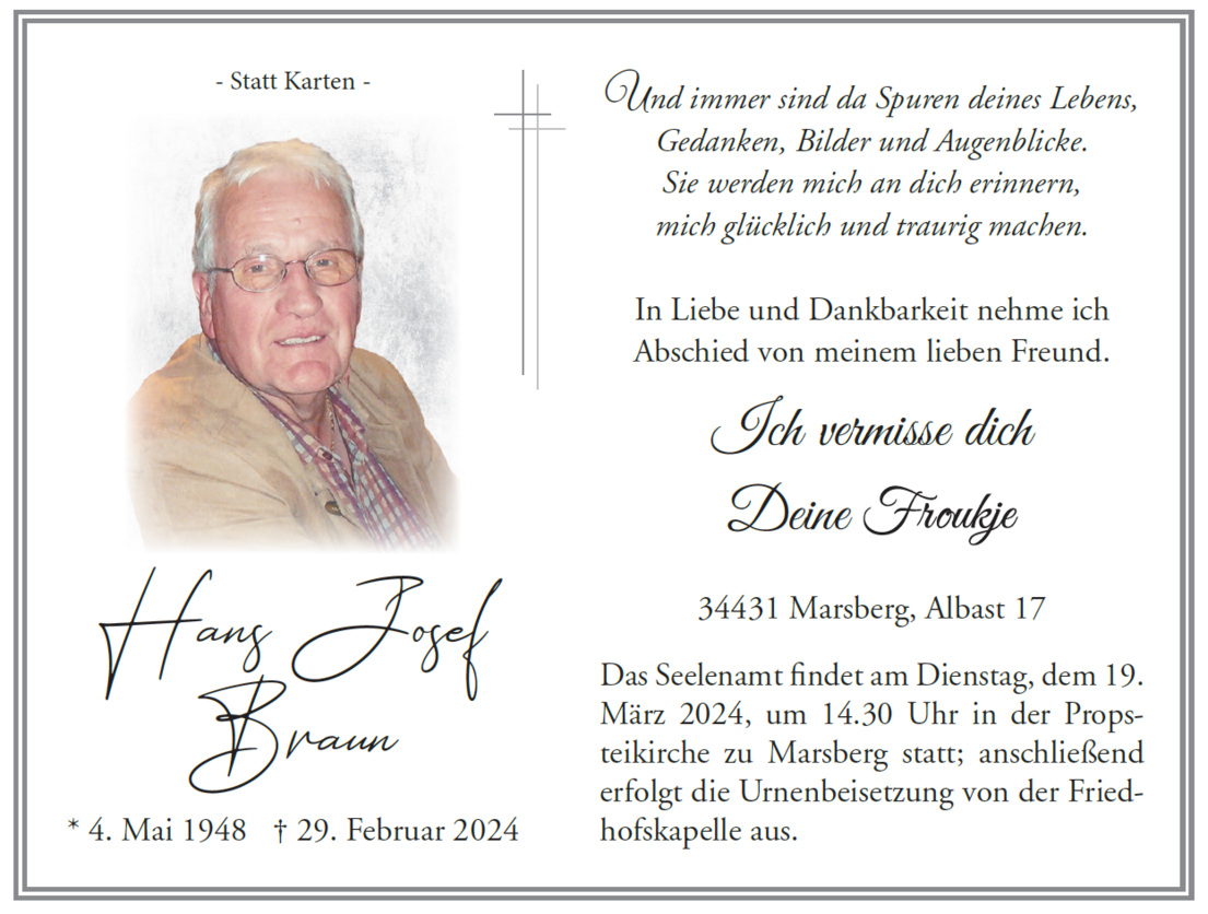 Sprechen Sie im Kondolenzbuch den Hinterbliebenen Ihr Mitgefühl aus und teilen Sie Ihre Erinnerungen und Gedanken mit anderen.