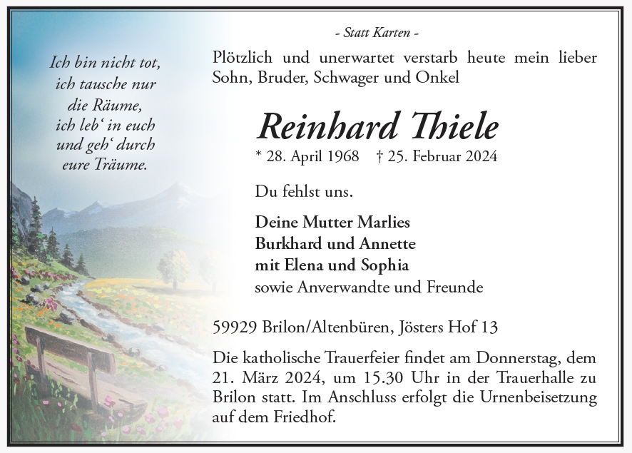 Sprechen Sie im Kondolenzbuch den Hinterbliebenen Ihr Mitgefühl aus und teilen Sie Ihre Erinnerungen und Gedanken mit anderen.